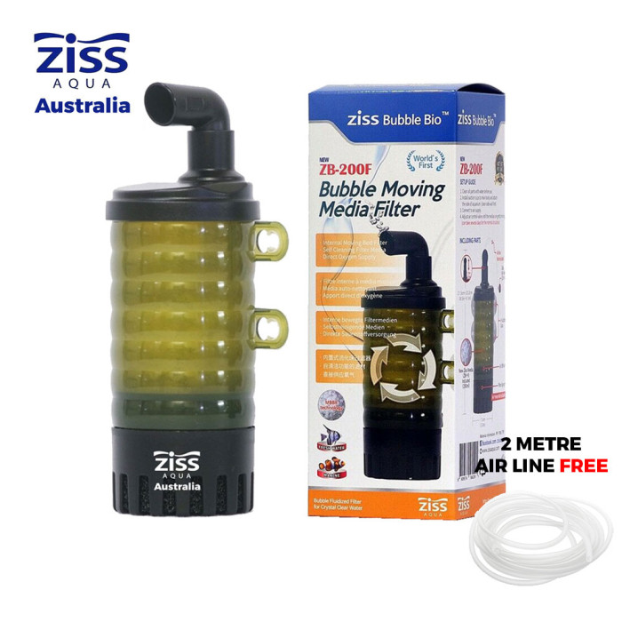 The Ziss Aqua Bubble Bio bubble moving media filter is an air-powered fluidised bed filter, combined with ultra-small biological filter media. The bio bubble can be used for both Marine and Freshwater fish tanks up to 200 litres as a biological filter. With enhanced flow, this new model is ideal for use with smaller/shallower tanks.