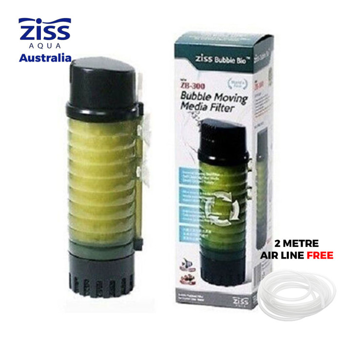 Ziss Bubble Bio bubble moving media filter. It can be used for both Marine and Freshwater fish tanks up to 300 litres. Bubble Bio is an air powered fluidised bed filter, combined with ultra-small biological filter media.