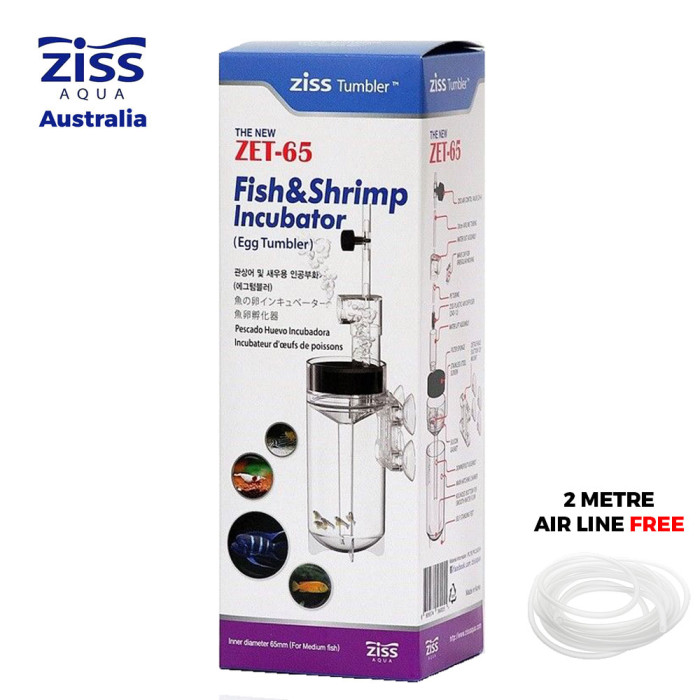 | Package Contents | 1 x Ziss Aquarium Fish & Shrimp Incubators Tumbler 2 Metre Air Tubing 1 x Ziss Air Valve (ZV-4) 2 x Suction cups to the glass 1x Air Diffuser |